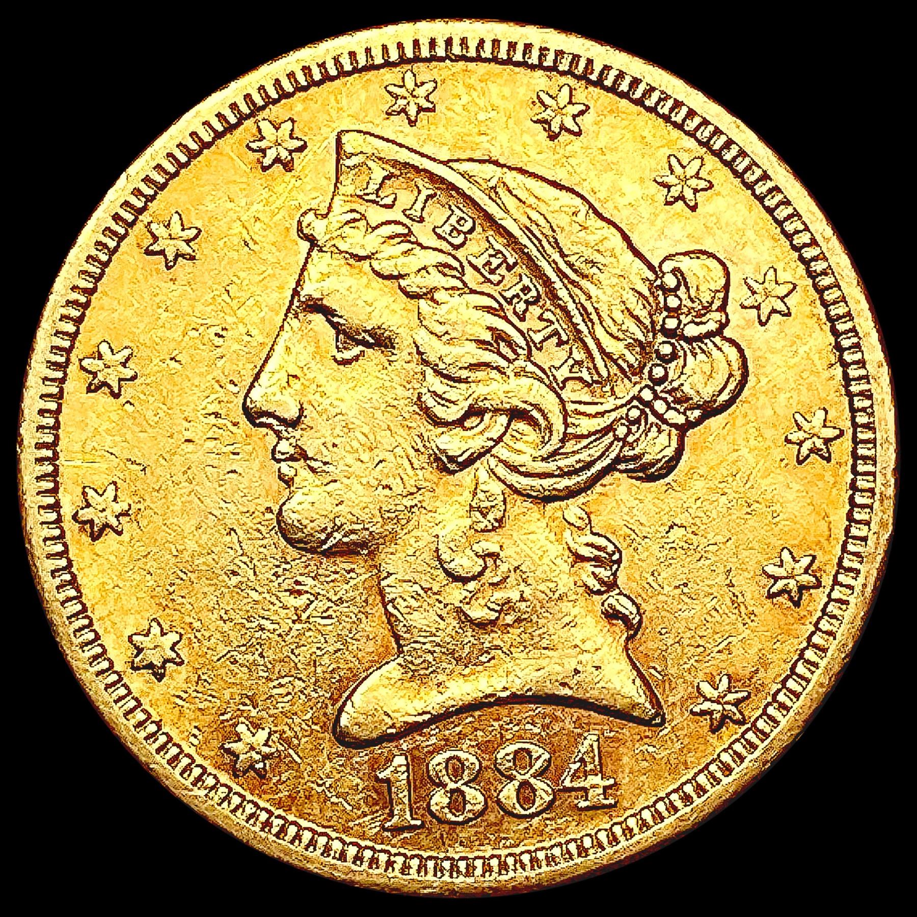 1884-S $5 Gold Half Eagle CLOSELY UNCIRCULATED