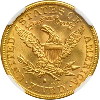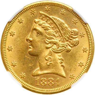 1884-S $5 Liberty. Obverse Improperly cleaned (PCGS # 8366) .
