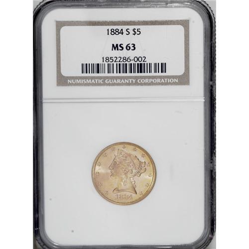 1884-S $5 MS63 NGC. The honey-gold surfaces have delic