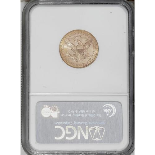 <B>1884-S<$5> MS63 NGC.</B></I> The honey-gold surfaces have delicate orange accents. Highly lustrous with well-defined devices and lightly abraded surfaces. Census: 44 in 63, 20 finer (9/06).