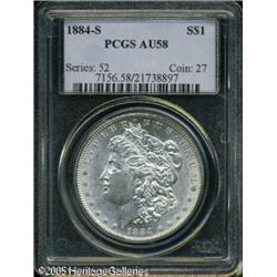 <B>1884-S<img border='0' src='http://www.heritagecoins.com/images/star.gif' width=10 height=10>$1 AU58 PCGS.</B></I> Sharply struck with fully brilliant silver color and lustrous surfaces. This is nearly Mint State, a condition level that becomes quite pricey. Lot:10174