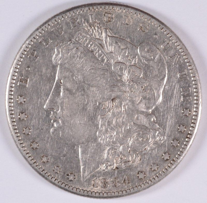 1884-S MORGAN SILVER DOLLAR, AU ( lightly cleaned )