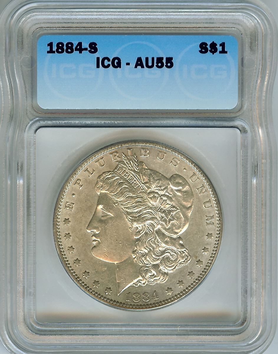 1884-S MORGAN SILVER DOLLAR ICG AU55
