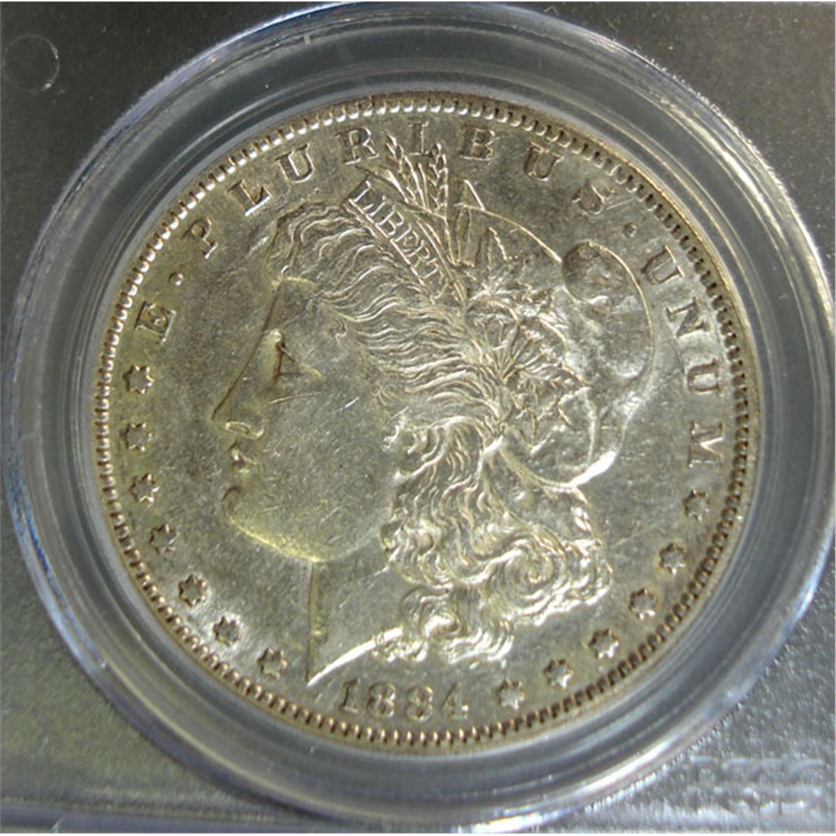 1884-S MORGAN SILVER DOLLAR, PCGS AU50