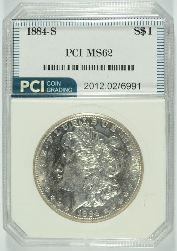 1884-S MORGAN SILVER DOLLAR, PCI MS-62 WHITE, TONS OF LUSTER, RARE, NICE STRIKE!