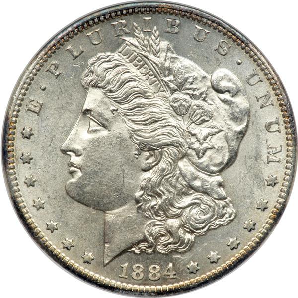 1884-S Morgan Dollar. NGC graded MS-61. Old Holder. Mostly white. Scarce date in Mint State (PCGS # 7156) .