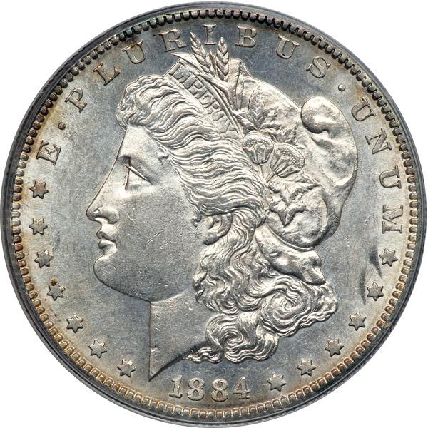 1884-S Morgan Dollar. PCGS graded AU-58. Lightly toned around the borders. Very close to full Mint State (PCGS # 7156) .