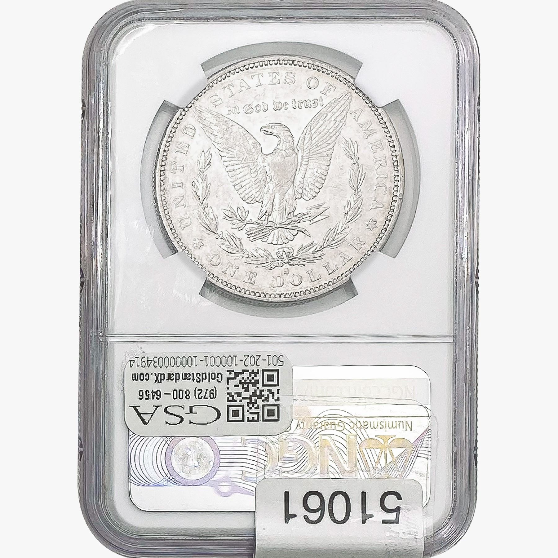 e. Coins sold referencing a third-party grading service are sold “AS IS” without any express or implied warranty, except for a guarantee by GSA that they are genuine. Removal or alteration of the holder, voids all of Bidder’s claims concerning that Product. Certain warranties may be available from the grading services and Bidders are referred to them for further details: Numismatic Guaranty Corporation (NGC), PO Box 4776, Sarasota, FL 34230, www.ngccoin.com/services/writtenguarantee.asp; Professional Coin Grading Services (PCGS), PO Box 9458, Newport Beach, CA 92658, www.pcgs.com/guarantee.html; ANACS, 6555 S. Kenton St., Ste. 303, Englewood, CO 80111; and Independent Coin Grading Co. (ICG), 7901 East Bellview, Ave., Suite 50, Englewood, CO 80111.