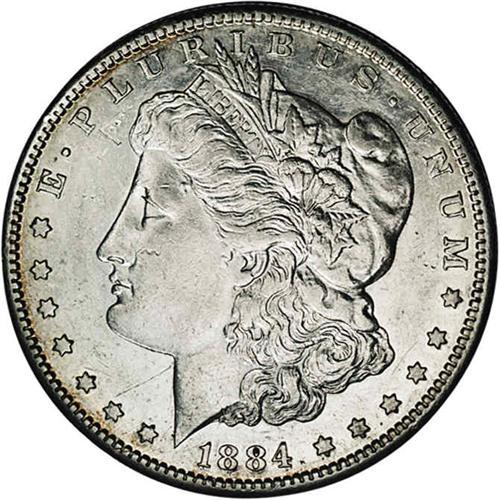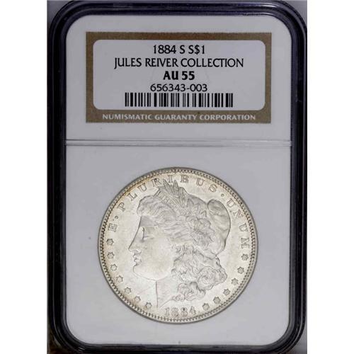 1884-S S$1 AU55 NGC. Mostly brilliant surfaces. The ob 1884-S[S$1] AU55 NGC.