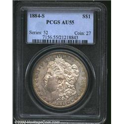 1884-S S$1 AU55 PCGS. A lightly abraded example that has wisps of golden-brown color on the margins.