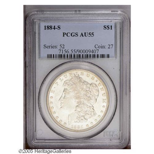 1884-S S$1 AU55 PCGS. Luster dominates recessed areas 1884-S[S$1] AU55 PCGS.
