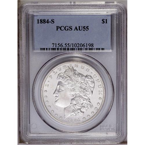 1884-S S$1 AU55 PCGS. Rare and elusive in Mint State,