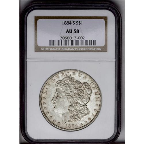 1884-S S$1 AU58 NGC. Lustrous light silver surfaces wi 1884-S[img border='0' src='http://www.heritag