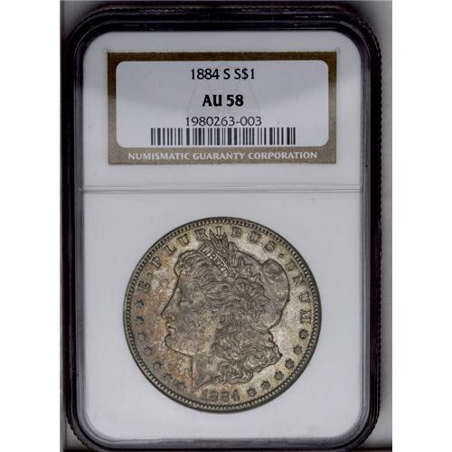 1884-S S$1 AU58 NGC. Toned in natural gray and reddish 1884-S[img border='0' src='http://www.heritag