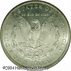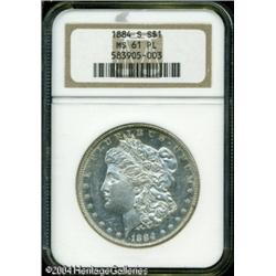 1884-S S$1 MS61 Prooflike NGC. The 1884-S is extre <B>1884-S S$1 MS61 Prooflike NGC.</B></I> The 1884-S is extremely rare in Prooflike and Mint State. In their many years of operation, NGC and PCGS combined have only certified 7 pieces as Prooflike in MS61 or higher grades, and no Deep Mirror Prooflike examples have been graded by either major service. Of course, any 1884-S in Mint State is rare, although VF examples are now commonplace. Unlike the 1878-S to 1882-S issues, the 1884-S Morgan Dollars were not saved in bag quantity by the Treasury. This well struck and brilliant piece has a fairly clean cheek and a well preserved reverse, although the obverse field has minor handling marks that are typical of the grade. Population: 2 in 61, 3 finer (11/04). <BR><BR><B>Important notice:</B> Heritage usually auctions material at the rate of 200-250 lots per hour. On some occasions eBay Live bid software or the Internet may not be able to keep up with the pace of the auction. We recommend placing a realistic absentee bid now as insurance to avoid disappointment. Occasionally the auctioneer may eliminate or reject an eBay Live bid, and the auctioneer may also reopen a lot after the close of the eBay live bidding (usually because we missed an audience bid), and may reject your bid even if it shows you as the winning bidder. By bidding via eBay Live, you agree that Heritage may award the lot to another bidder at its sole discretion under the circumstances described above or any other reasonable circumstances. Since eBay bids are not shown to us until we open the lot on the floor, we treat those bids just like floor bids. In most cases the floor responds before the eBay bid is presented to us, due to Internet lag time, so for consistency we have made it a policy that floor bids are always considered first over tie eBay live bids. Also please note that all Heritage lots purchased through eBay Live carry a 20% Buyer's Premium. Please make sure you read the Terms and Conditions before you bid. This lot is being auctioned in conjunction with a live floor auction by Heritage Galleries & Auctioneers. All final auction and invoice information will be supplied by Heritage Galleries & Auctioneers, and all other information should be considered preliminary. Lot:7489