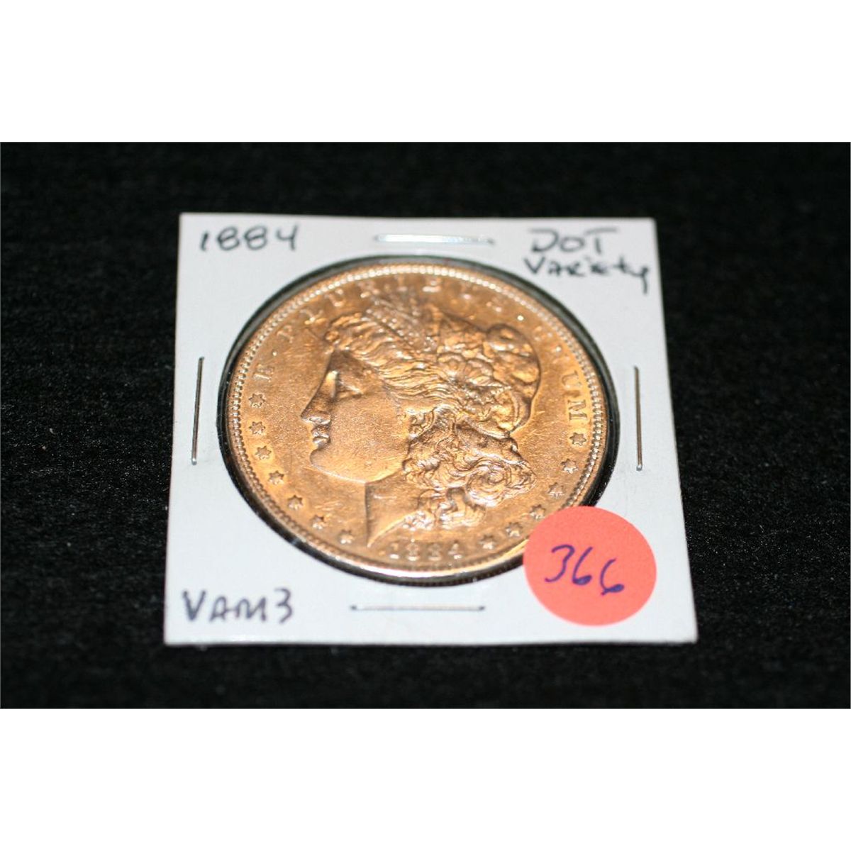 1884 Silver Morgan one dollar, DOT variety, VAM3