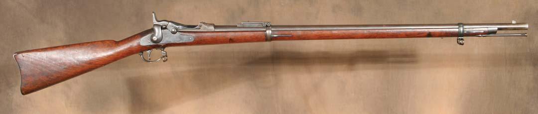 1884 US Springfield Trapdoor Rifle. 36" barrel, 52" overall. 45-70, Serial #337988. Military rifle. (est $1,200-1,500). For condition reports please visit: www.auctioninsantafe.com/cr2011.pdf