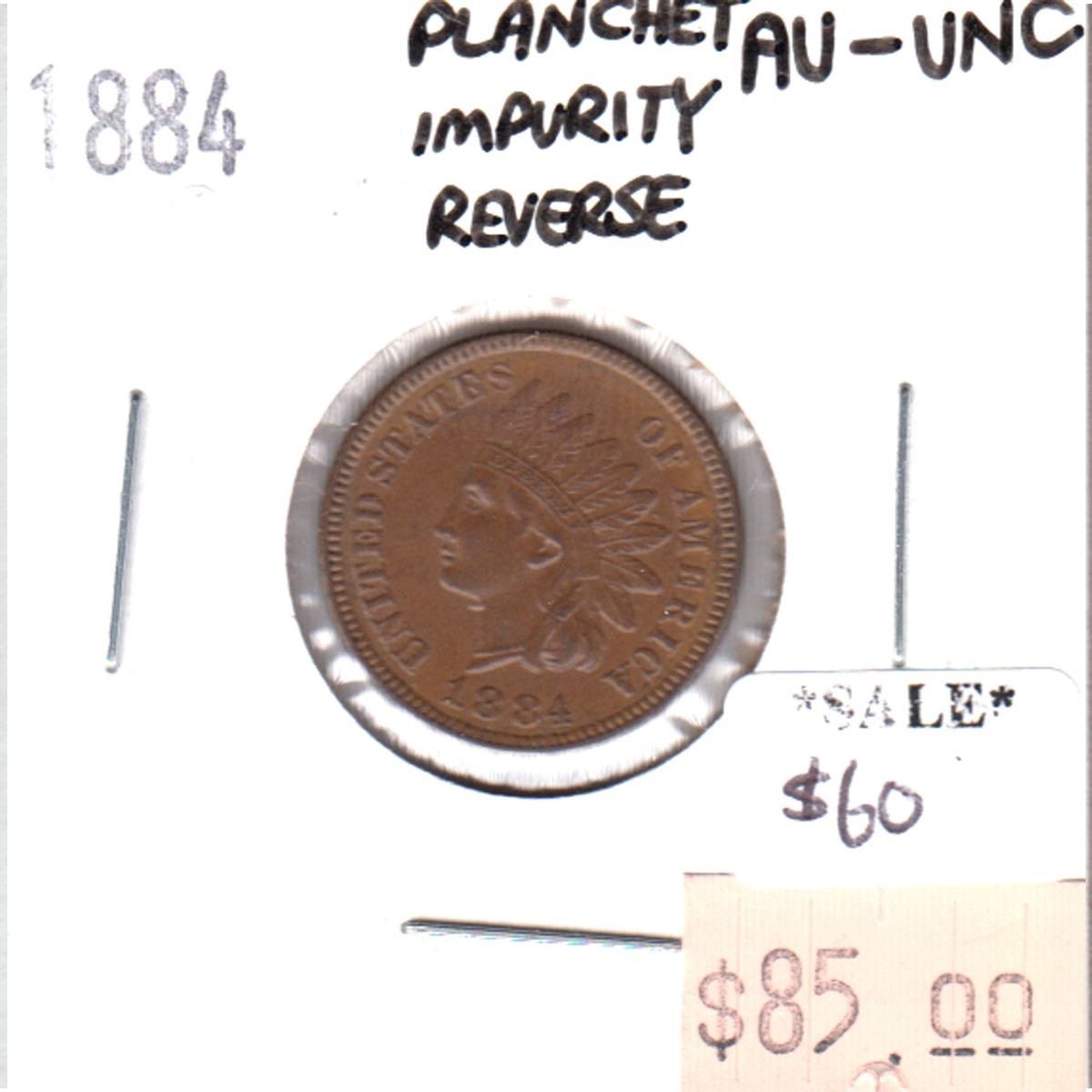 1884 USA Cent AU-UNC (AU-55) Planchet Impurity Reverse