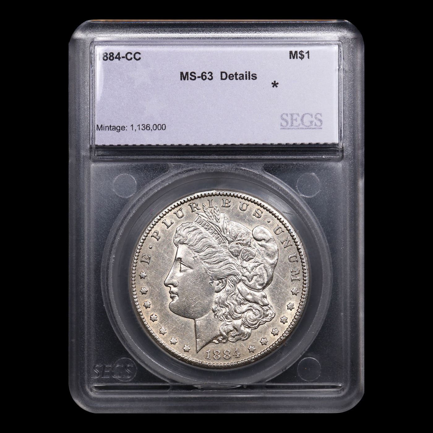 1884-cc Morgan Dollar $1 Graded ms63 details BY SEGS.