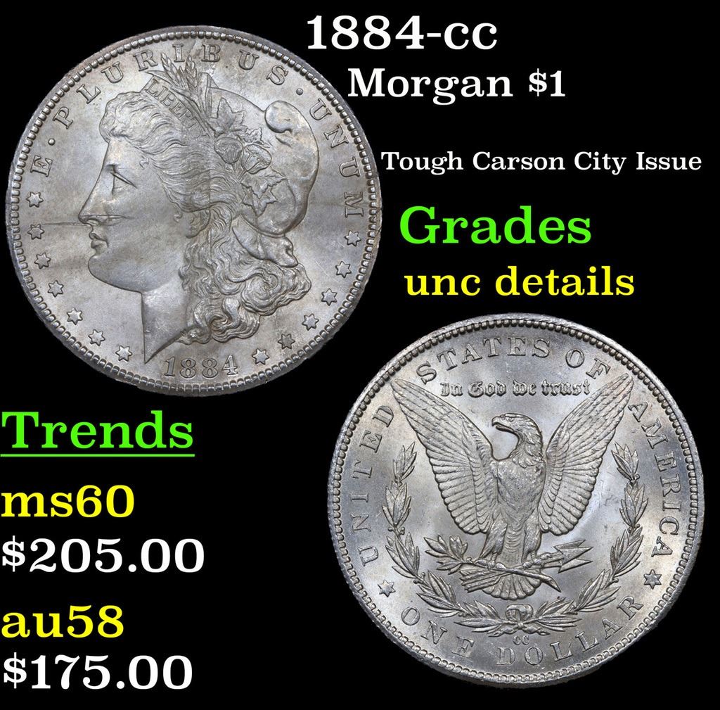 1884-cc Morgan Dollar $1 Grades Unc Details. Tough Carson City Issue