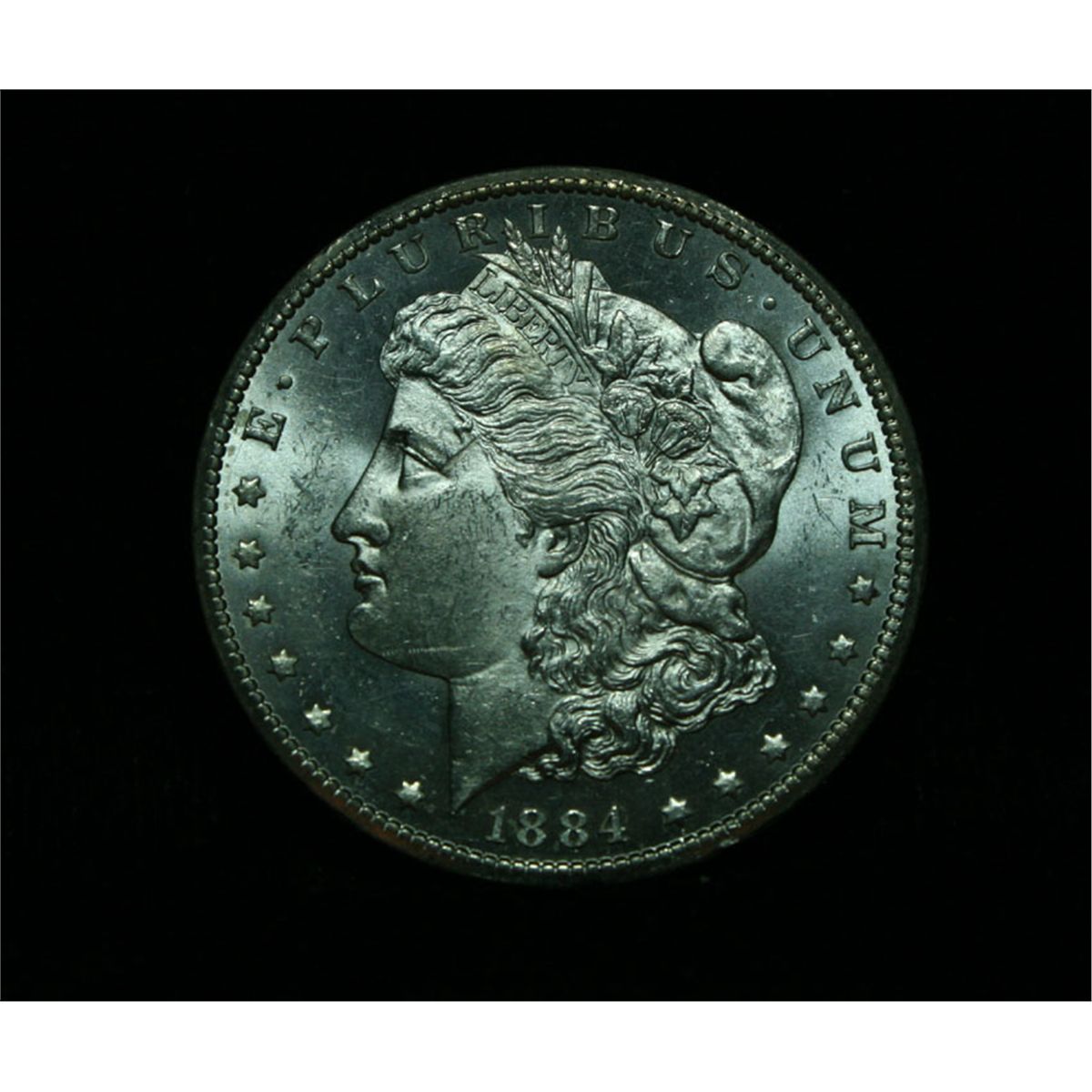 A very Strong PL example, almost DMPL. A great example of the 1884-cc, very pleasing to the eye and a very nice mirrored fields. Coin World's Coin Values lists ms64 regular at $300 and ms64 DMPL at $550, and The Wholesale Greysheet lists ms64 at $215 and ms64 DMPL at $450. Estimated Value $300