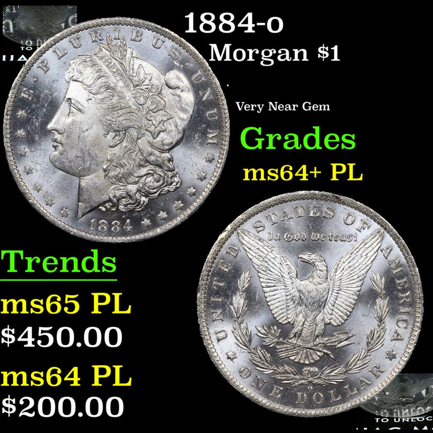 1884-o Morgan Dollar $1 Grades Choice Unc+ PL.