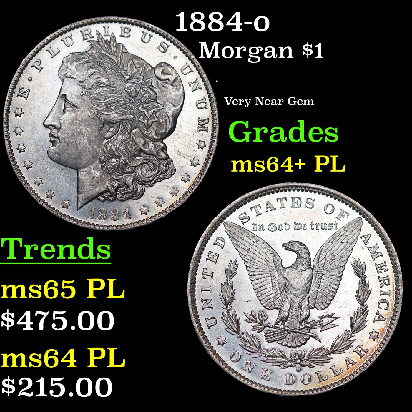 1884-o Morgan Dollar $1 Grades Choice Unc+ PL.