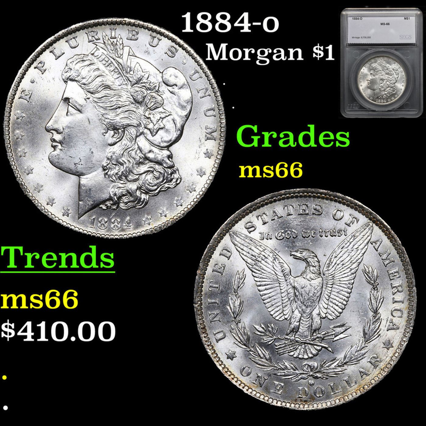 1884-o Morgan Dollar 1 Grades GEM+ Unc by SEGS.