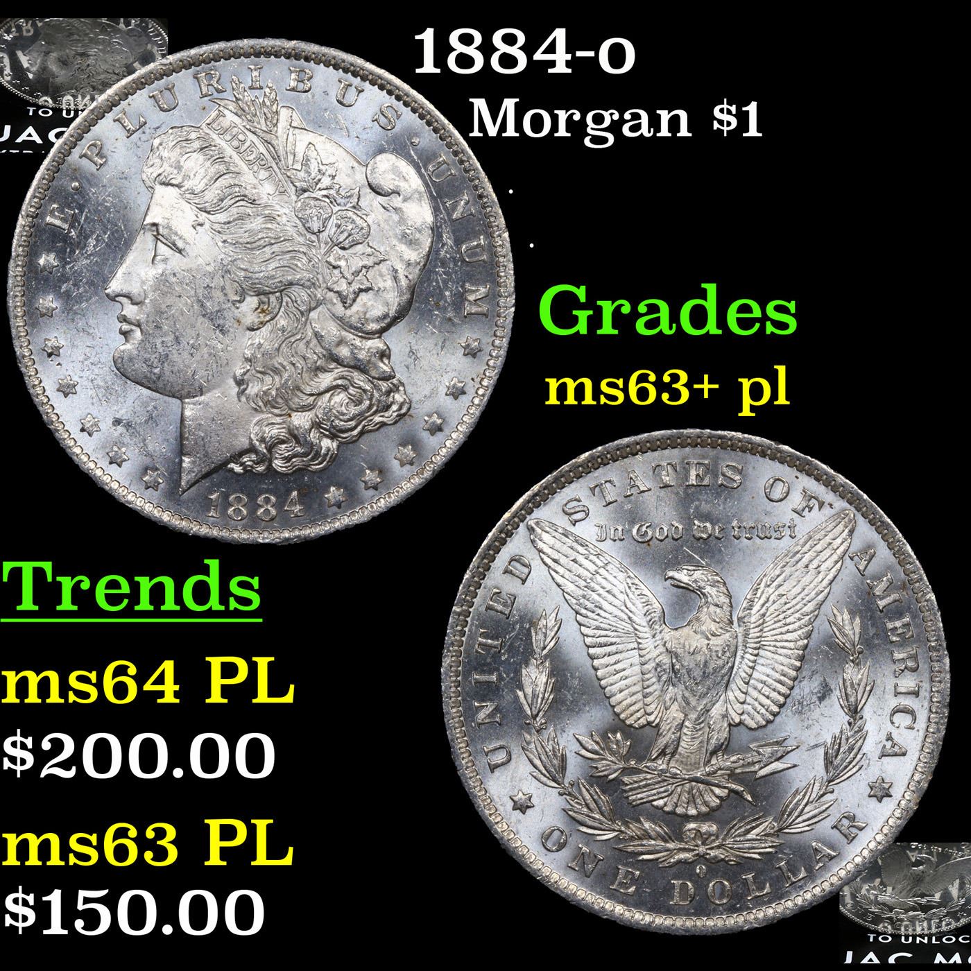 1884-o Morgan Dollar $1 Grades Select Unc+ PL.