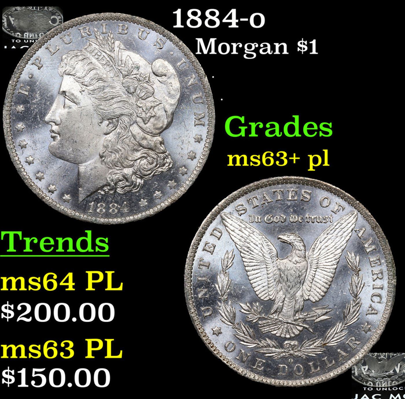 1884-o Morgan Dollar $1 Grades Select Unc+ PL.