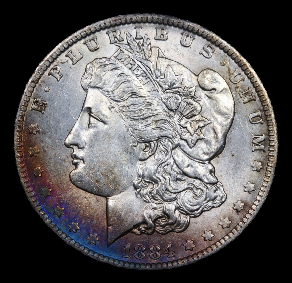 1884-o Rainbow Toned Morgan Dollar $1 Grades Choice+ Unc.