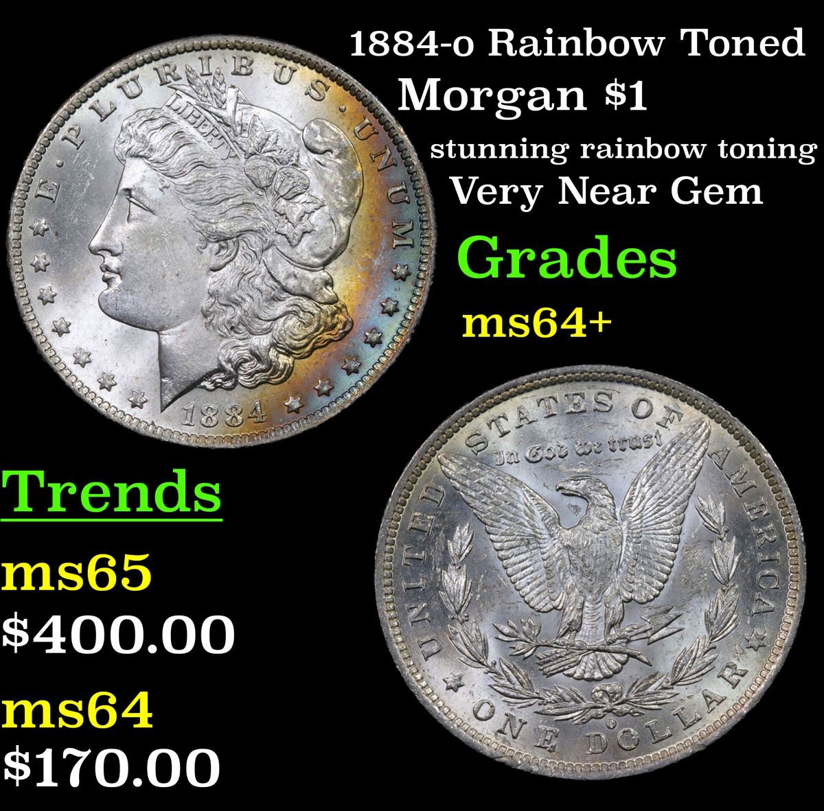 1884-o Rainbow Toned Morgan Dollar $1 Grades Choice+ Unc.