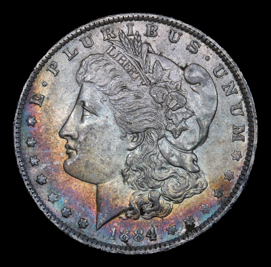 1884-o Rainbow Toned . . Morgan Dollar $1 Grades Select+ Unc. A Corey's Pick, Bid to Win Coin