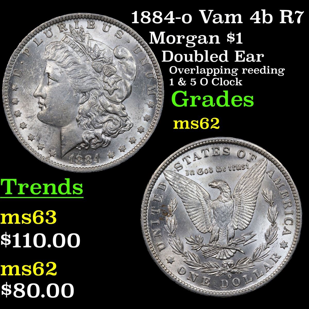 1884-o Vam 4b R7 Morgan Dollar $1 Grades Select Unc.