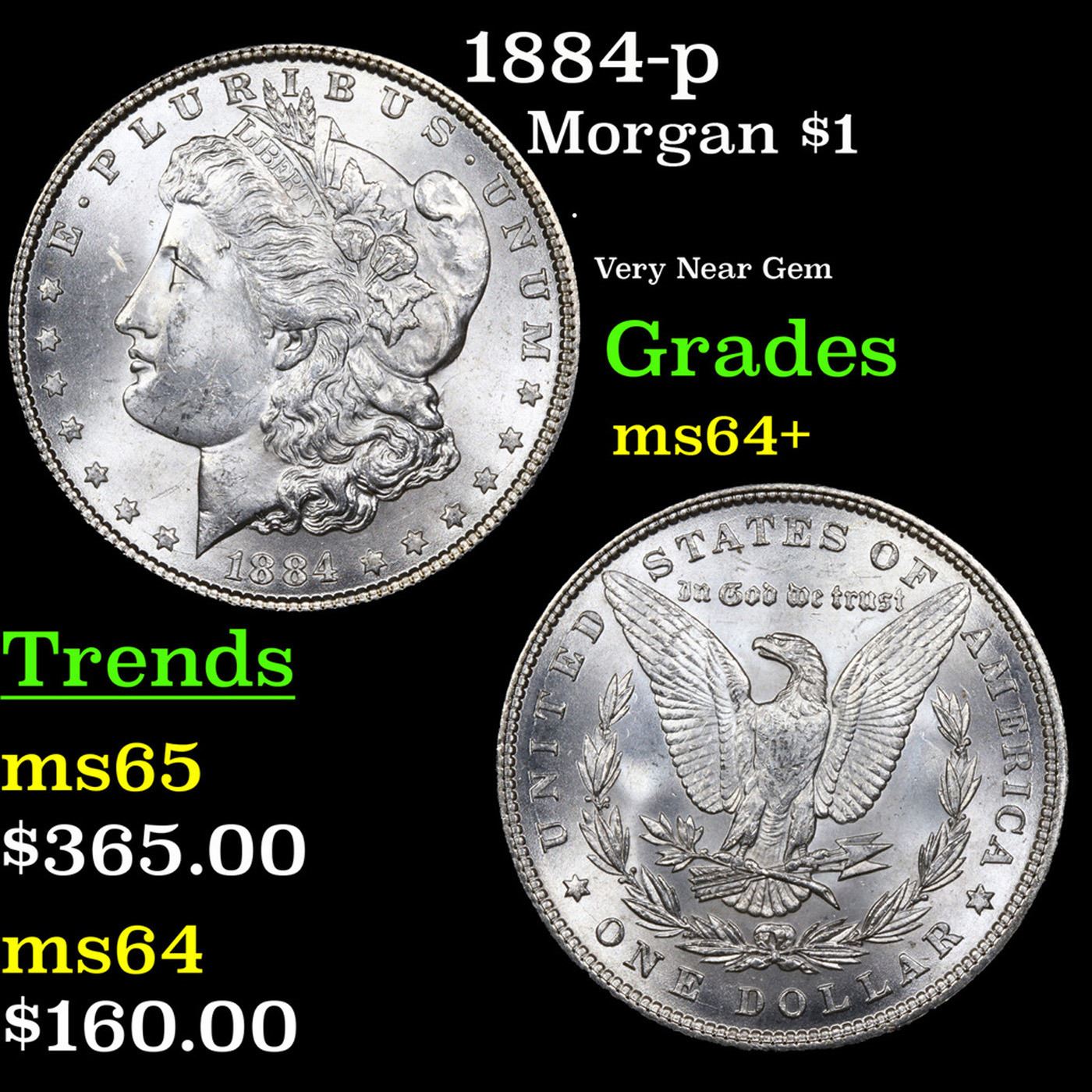 1884-p Morgan Dollar $1 Grades Choice+ Unc.