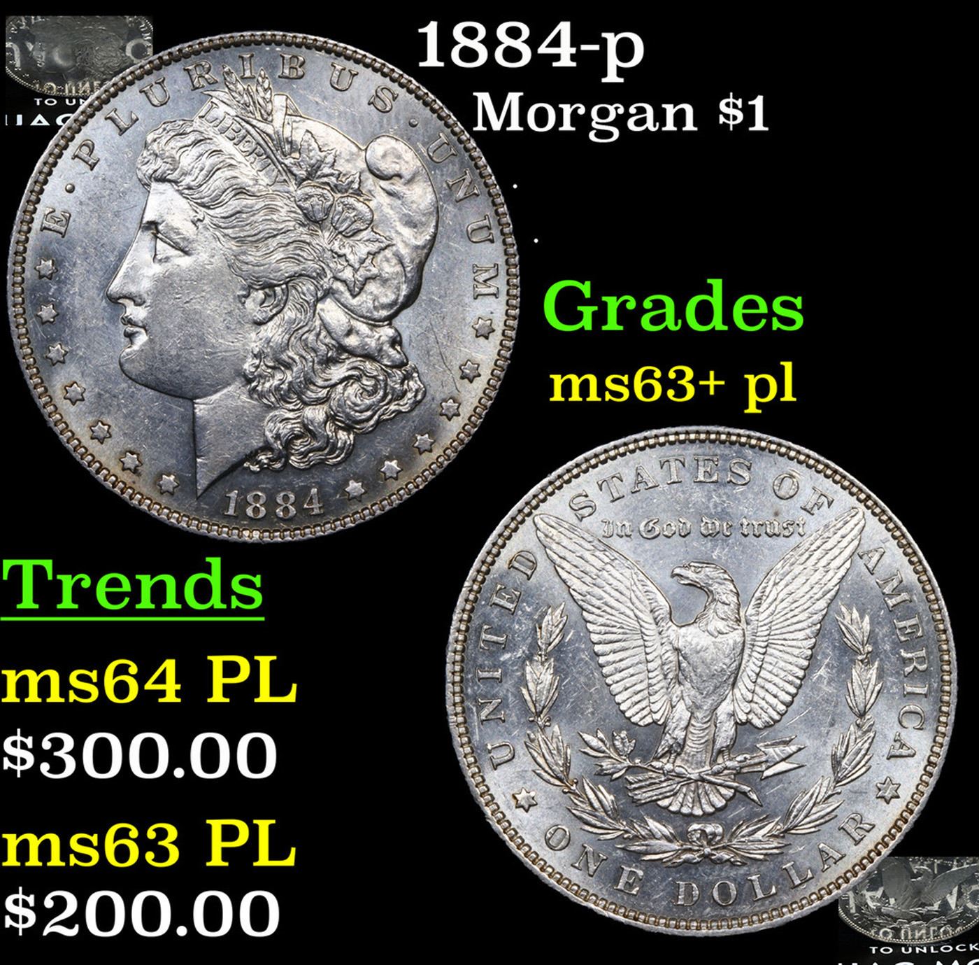 1884-p Morgan Dollar $1 Grades Select Unc+ PL.