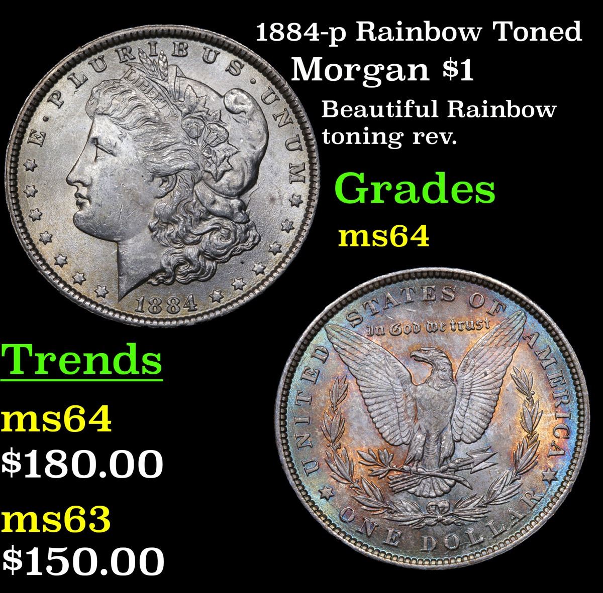 1884-p Rainbow Toned Beautiful Rainbow toning rev. . Morgan Dollar $1 Grades Choice Unc.