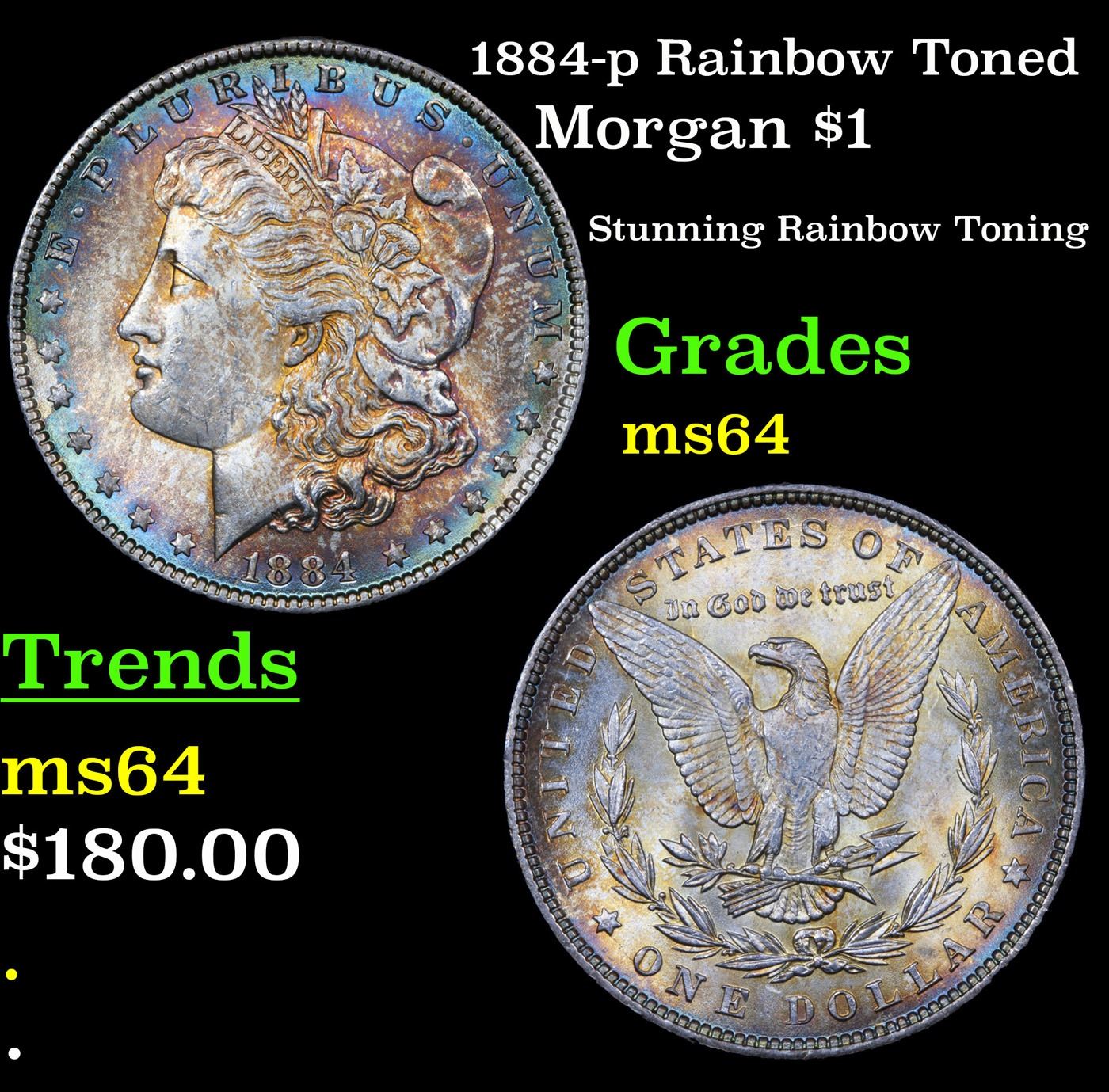 1884-p Rainbow Toned Morgan Dollar $1 Grades Choice Unc.
