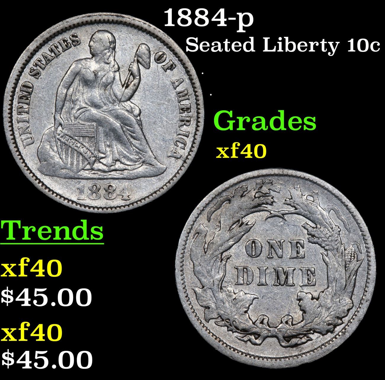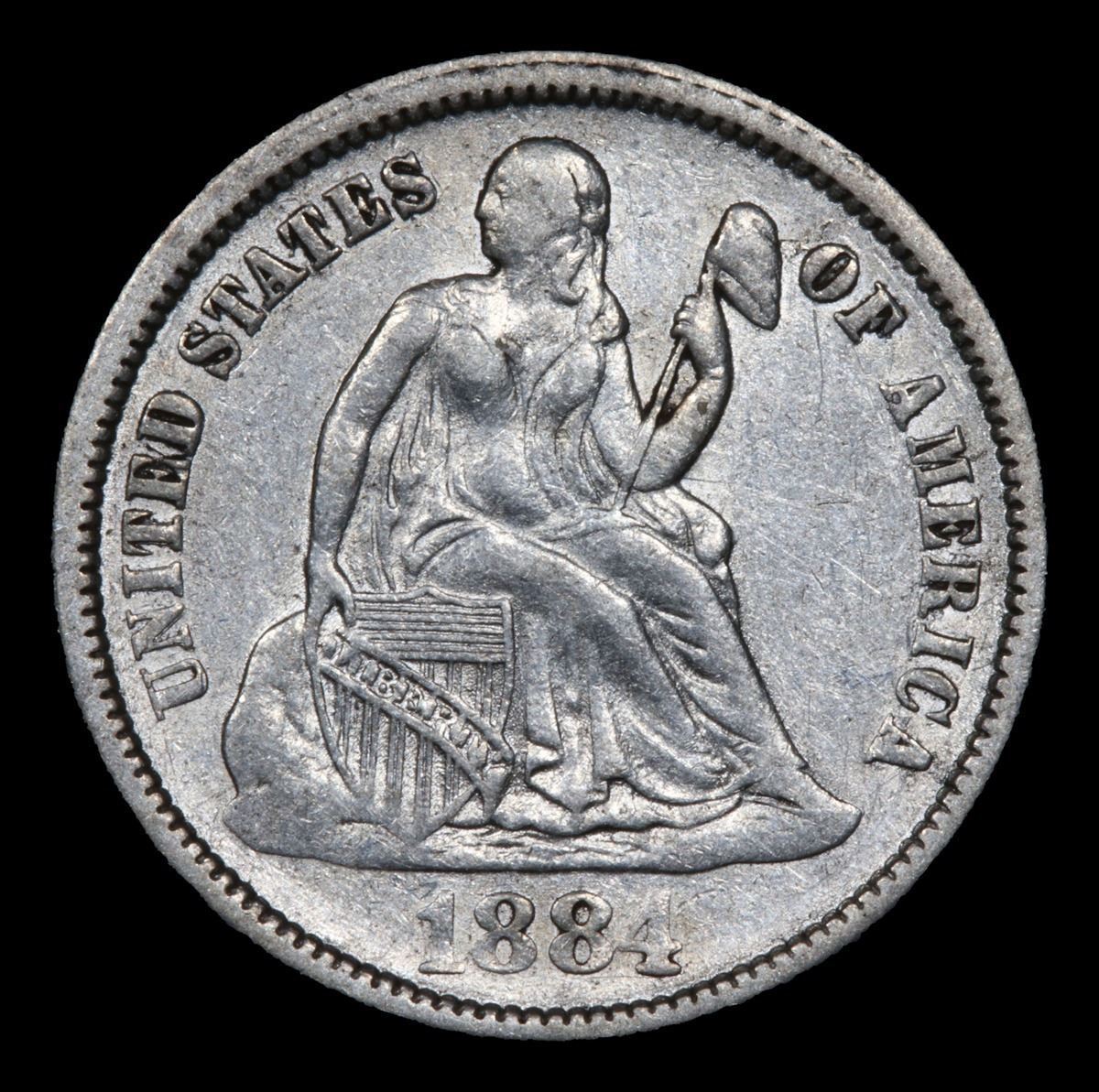 1884-p . Seated Liberty Dime 10c Grades xf.