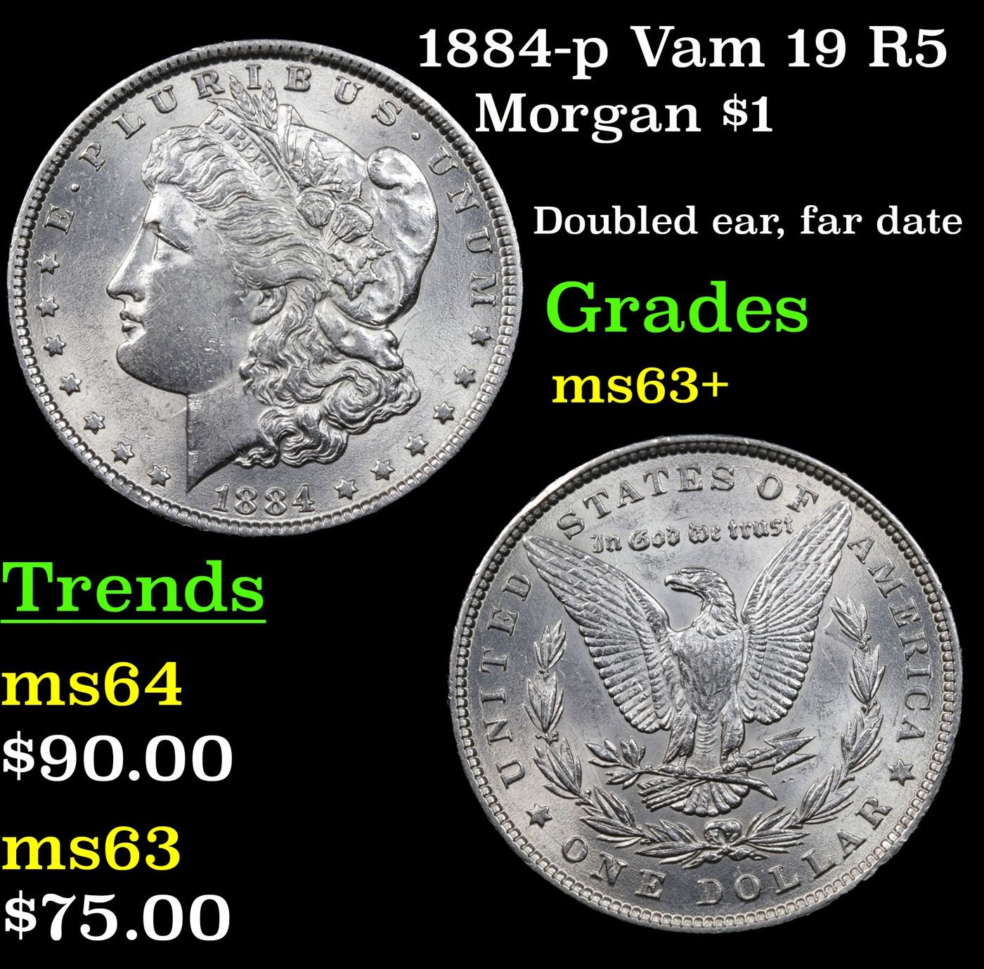1884-p Vam 19 R5 Morgan Dollar $1 Grades Select+ Unc.