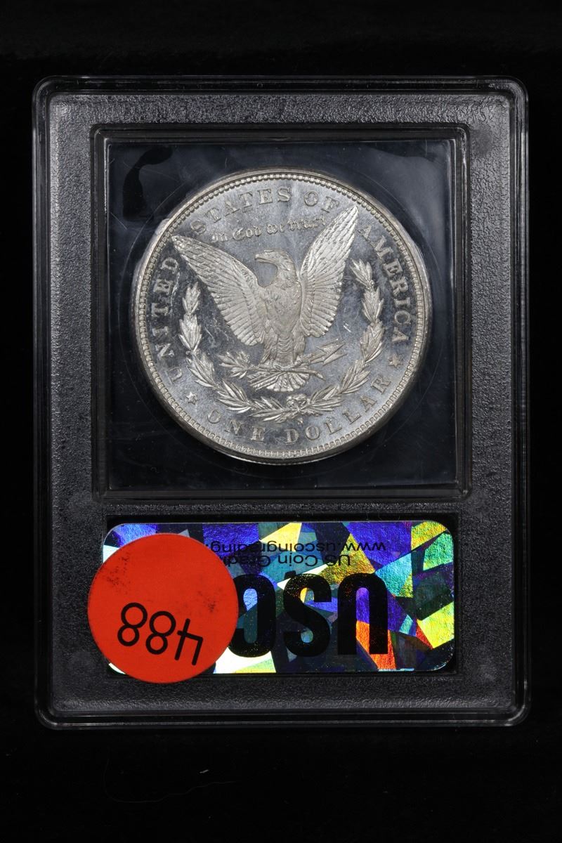 1884-p Vam 2a 'e' On Rev Hot 50 Morgan Dollar $1 Grades Choice Unc. Up for Auction is the Rare 1884-p �E on Reverse� Hot 50 Variety. It is a Rarity 5 variety. Highly Sought. It is also part of The Elite Clashed Die Series. It has the �bat-Wing� clash and the dash under the 8. A wild coin with lots and lots going on. A Corey's Pick, Bid to Win Coin