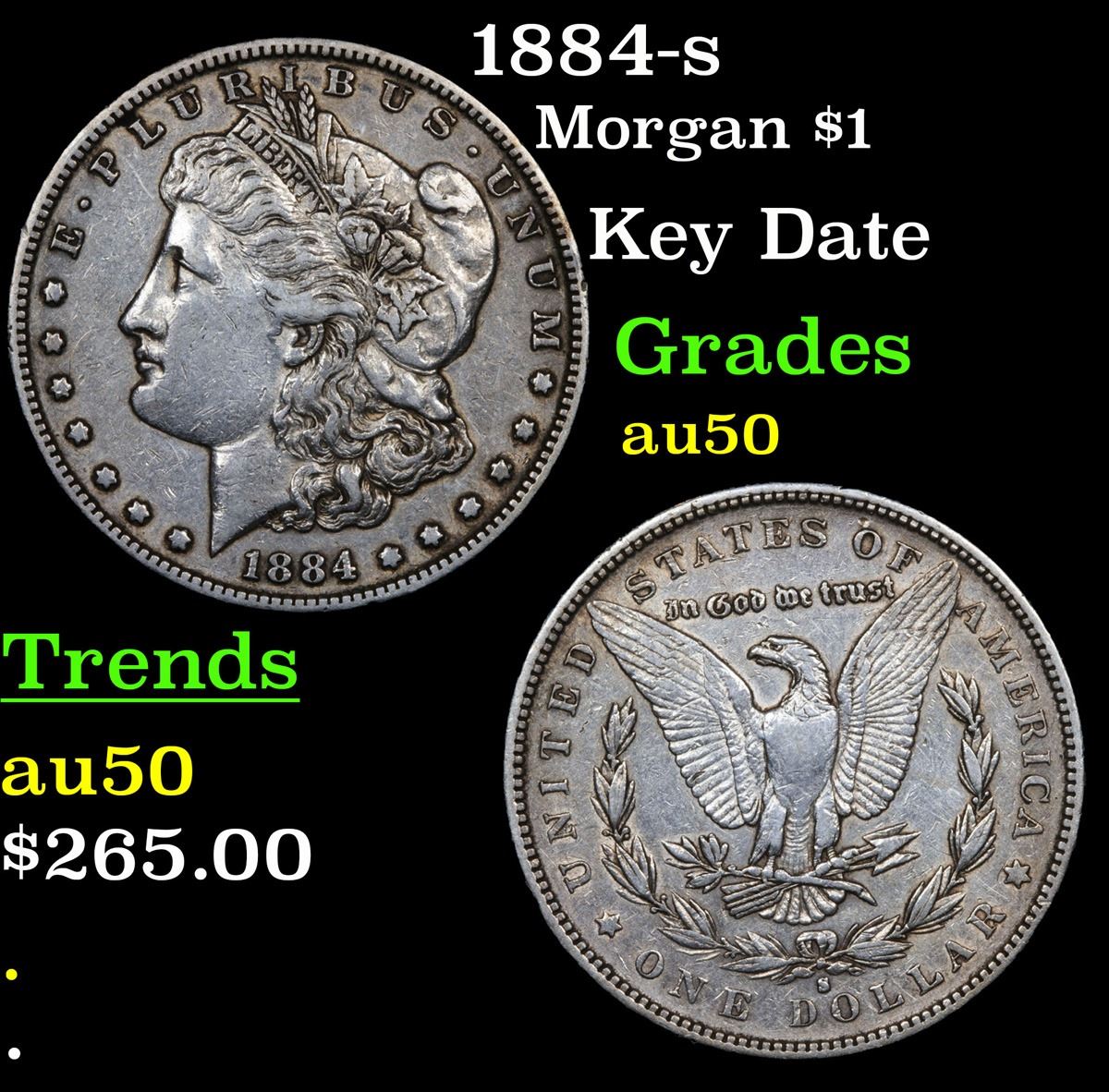 1884-s Morgan Dollar $1 Grades AU, Almost Unc