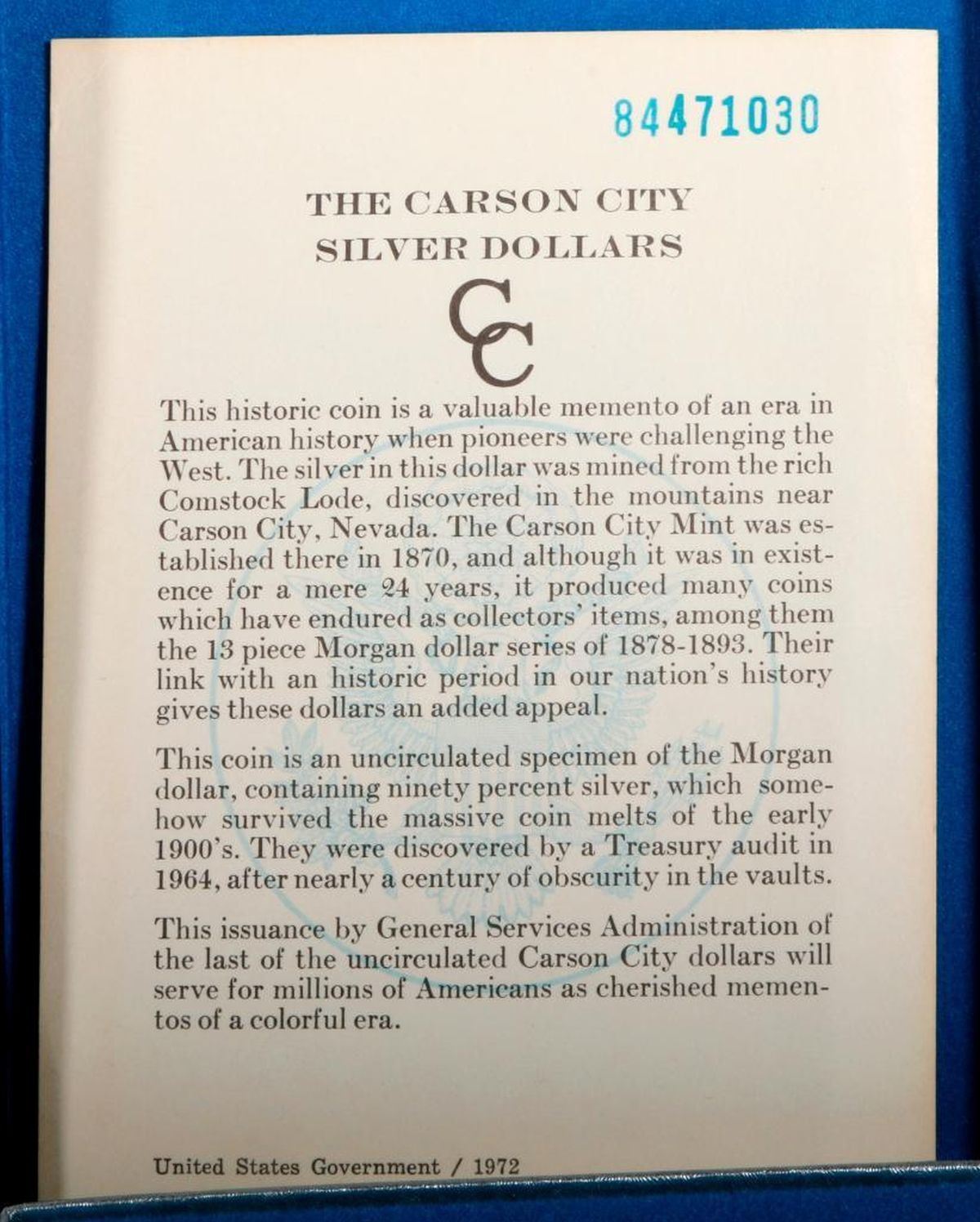 1884 uncirculated Carson City silver dollar (NGC rated) GSA Hoard MS63.