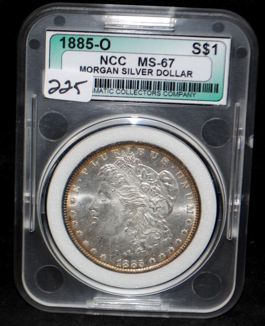 1885-0 MORGAN DOLLAR - NCC MS67 (PCGS PRICE GUIDE LISTS AN MS67 @ $1,700.00)