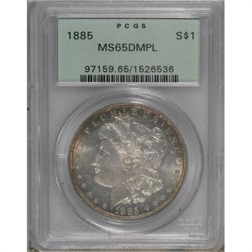 <B>1885 $1 MS65 Deep Mirror Prooflike PCGS.</B></I> PCGS Population (287/63). NGC Census: (199/58). Numismedia Wsl. Price for NGC/PCGS coin in MS65: $675. (#97159)<BR><BR><b>Shipping:</b> Coins & Currency (<a target="_blank" href="http://www.heritageauctions.com/common/shipping.php">view shipping information</a>)