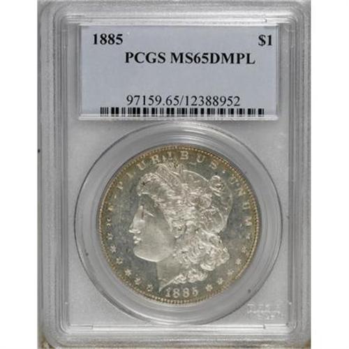 <B>1885 $1 MS65 Deep Mirror Prooflike PCGS.</B></I> PCGS Population (290/63). NGC Census: (199/59). Numismedia Wsl. Price for NGC/PCGS coin in MS65: $675. (#97159)<BR><BR><b>Shipping:</b> Coins & Currency (<a target="_blank" href="http://www.heritageauctions.com/common/shipping.php">view shipping information</a>)