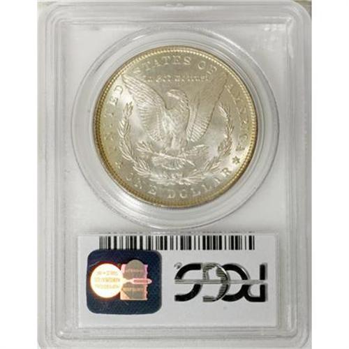 <B>1885 $1 MS64 PCGS.</B></I> Delicate canary-yellow toning laced with green drapes the lustrous reverse. On the obverse, this earlier Philadelphia piece shows vivid yellow-gold patina to the left that fades through magenta, blue-violet, and finally sea-green at the right.<BR><BR><B>Coin Engraver:</B> George T. Morgan<BR><BR><b>Shipping:</b> Coins & Currency (<a target="_blank" href="http://www.heritageauctions.com/common/shipping.php">view shipping information</a>)