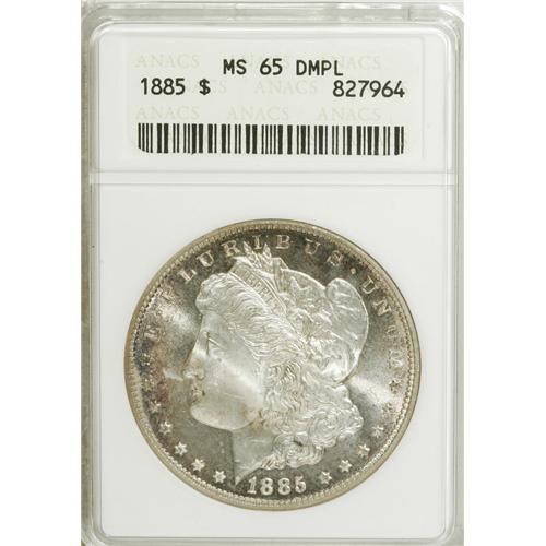 1885 $1 MS65 Deep Mirror Prooflike ANACS. NGC Cens