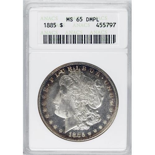 1885 $1 MS65 Deep Mirror Prooflike ANACS. NGC Cens
