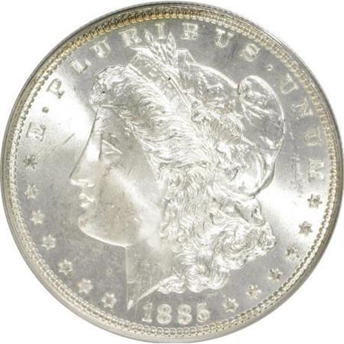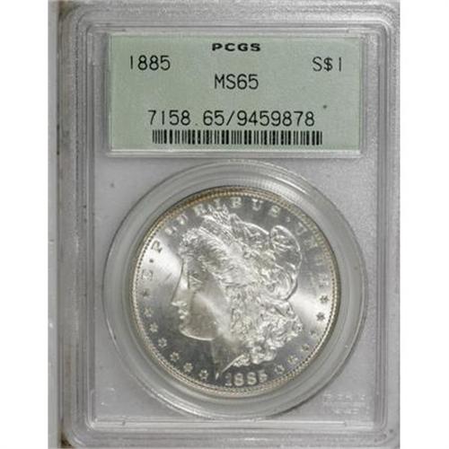 <B>1885 $1 MS65 PCGS.</B></I> PCGS Population (6839/1233). NGC Census: (8109/1521). Mintage: 17,787,768. Numismedia Wsl. Price for NGC/PCGS coin in MS65: $145. (#7158)<BR><BR><B>Coin Engraver:</B> George T. Morgan<BR><BR><b>Shipping:</b> Coins & Currency (<a target="_blank" href="http://www.heritageauctions.com/common/shipping.php">view shipping information</a>)